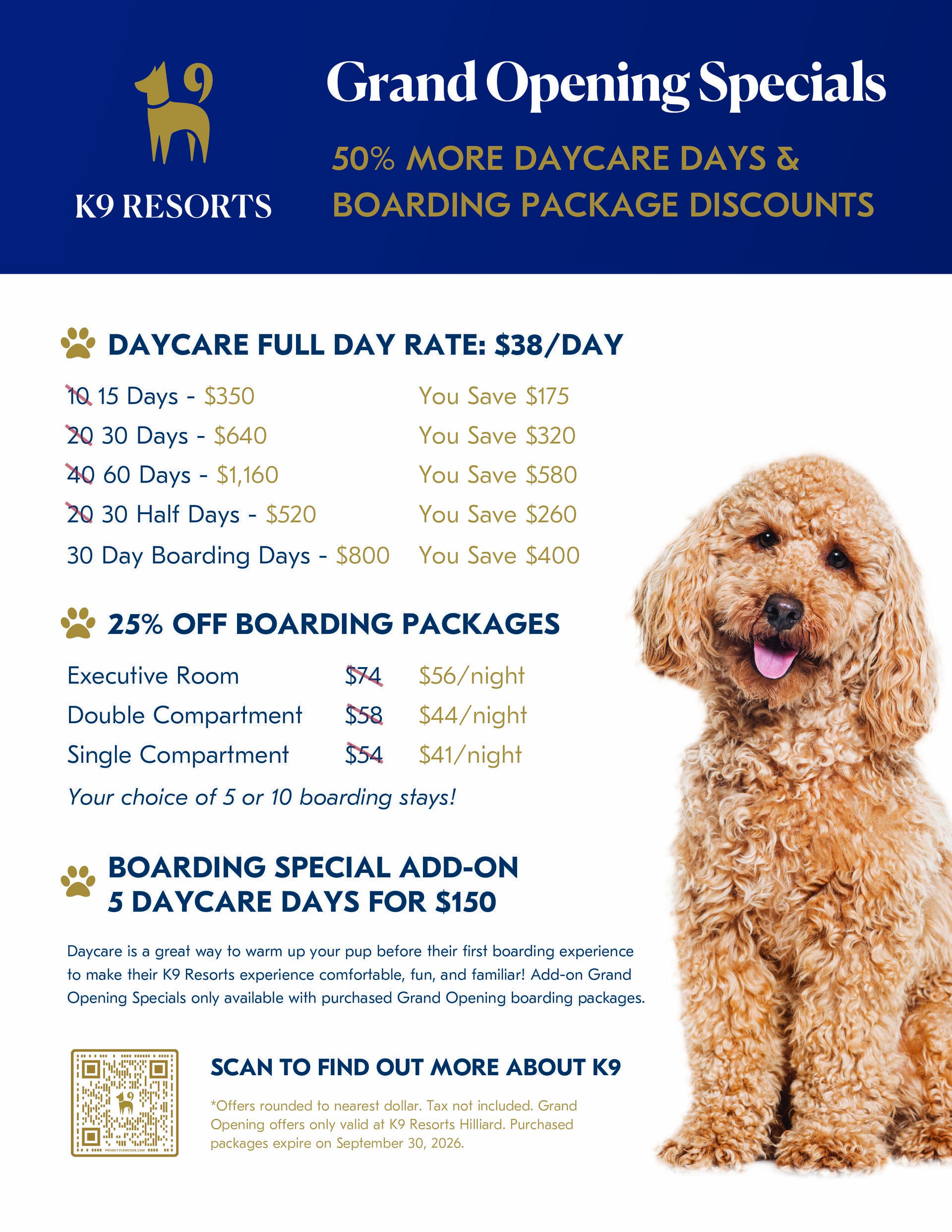 Learn MoreWe’re rolling out the red carpet (and the blue mats!) for dogs in Greece! To celebrate our Grand Opening, K9 Resorts is offering limited-time savings on luxury dog boarding and dog daycare. Enjoy discounted daycare packages or save 25% on premium overnight stays, including executive rooms, double compartments, and single compartments. Winter can disrupt your dog’s routine, but our climate-controlled daycare keeps pups active, engaged, and happy with supervised play, socialization, and safe, spacious indoor areas. With professional staff, a focus on cleanliness, and year-round fun, your dog will stay healthy and entertained no matter the weather. Don’t miss these Grand Opening offers—treat your pup to the five-star care they deserve at K9 Resorts in Greece!