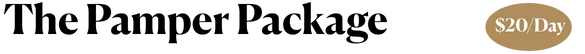 The Pamper Package is an extra-special trio of joy that ensures the ultimate overnight stay for your best friend!